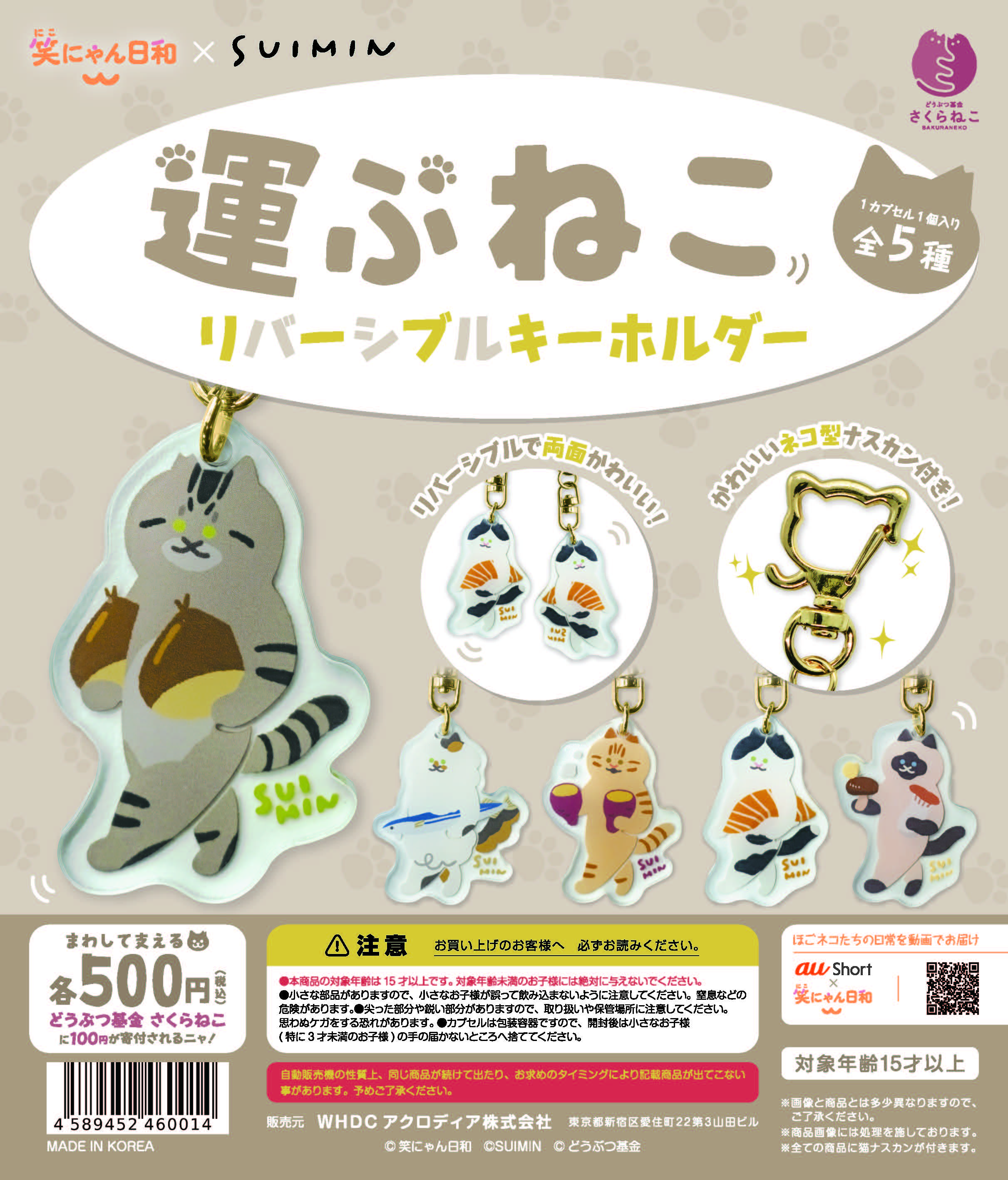 笑にゃん日和プロジェクトの売上の一部は、公益財団法人どうぶつ基金へ寄付させていただき、不妊手術を実施することで繁殖を防止する「さくらねこTNR」や、新たな飼い主を探す活動支援などの継続的な支援に役立てていただく予定です。